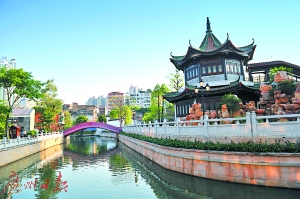 荔灣區(qū)粵劇博物館周邊干凈整潔水清天藍(lán)。廣報記者楊耀燁攝