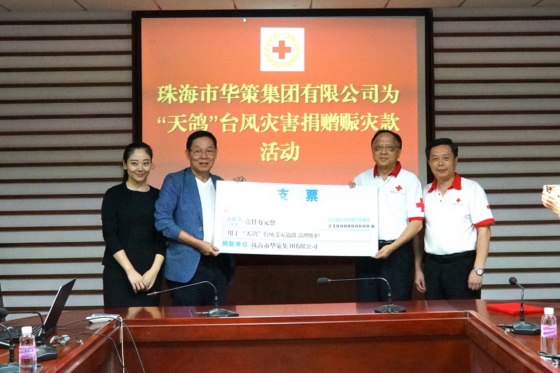 24日下午,珠海市政府副市長、市紅十字會(huì)長閻武代表珠海市紅十字會(huì)接受了珠海華策集團(tuán)有限公司1000萬元人民幣捐款,該款將專用于珠海的交通道路設(shè)施恢復(fù)。華策集團(tuán)主席楊峰表示,這次“天鴿”來襲,街頭綠化樹被臺(tái)風(fēng)連根拔起,成了交通障礙物,給民眾出行帶來阻礙,險(xiǎn)情揪人心,要將危機(jī)當(dāng)做一次演練,加強(qiáng)防范危機(jī)設(shè)備的投入,做個(gè)有社會(huì)公德心的開發(fā)商,希望一份微弱之舉能盡快恢復(fù)交通道路設(shè)施,幫助市民早日方便出行。