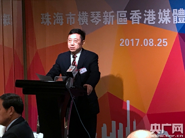 珠海市橫琴新區(qū)管委會主任楊川在香港媒體高層座談會上介紹情況