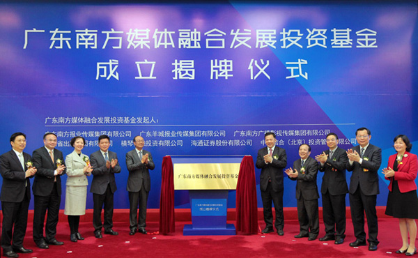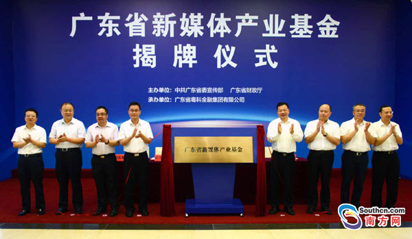 2016年3月27日,總規(guī)模百億元的廣東省首支媒體融合投資基金——廣東南方媒體融合發(fā)展投資基金在廣州成立。廣東省委常委、宣傳部部長(zhǎng)慎海雄出席儀式并為基金揭牌。