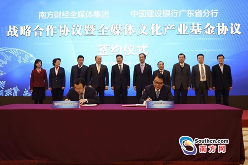 2017年1月15日,南方財(cái)經(jīng)全媒體集團(tuán)與中國(guó)建設(shè)銀行廣東省分行在廣州簽訂戰(zhàn)略合作協(xié)議。