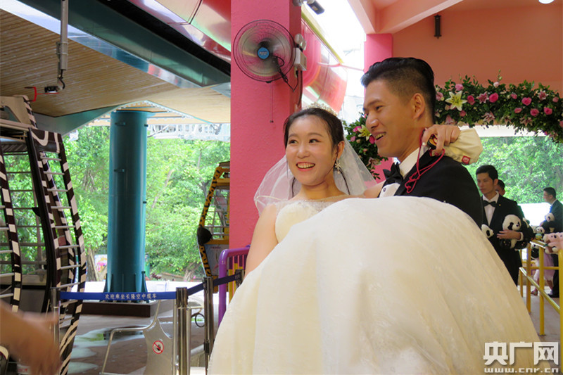 央廣網(wǎng)廣州7月8日消息(記者 王雪薇)草坪婚禮、海邊婚禮見得多了,而有機(jī)會(huì)在空中許下愛的誓言則并不多見。7月8日中午,全球最大的空中集體婚禮在廣州長隆野生動(dòng)物世界舉行,來自全國的227對(duì)新人乘坐227個(gè)空中纜車,留下了足以銘記一生的時(shí)刻。