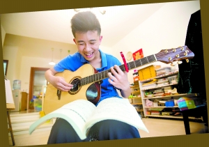 不識水性的徐平還套上救生衣帶森友學游泳練體能。參加表演活動,森友在臺上不知如何擺放吉他,面露緊張神色時,徐平會第一時間沖上舞臺,接過孫子手中的吉他。只有中學畢業(yè)文化水平的徐平,閱讀大量有關(guān)自閉癥和特殊教育類的書籍,自學兒童心理學和心智理論類的知識,常常被周圍人誤認成老師。