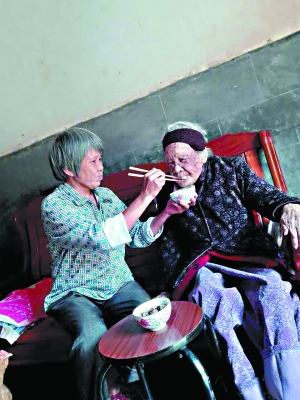 紫金縣百歲孤寡老人李英生前得到劉運如無微不至的照料。