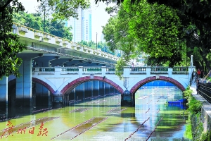 如今的越秀古橋,舊貌猶存,位于越秀北路和東風(fēng)路的交界處,東濠涌之上,隱身于高架橋之下,成為整治后美麗東濠涌的一道質(zhì)樸風(fēng)景。