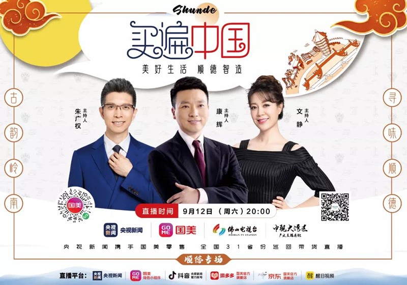 央廣網(wǎng)順德9月10日消息(記者 張勝?gòu)?qiáng) 通訊員 順宣)9月12日晚上8時(shí),“美好生活 順德智造”央視新聞新媒體全國(guó)巡回帶貨直播節(jié)目“買遍中國(guó)”順德專場(chǎng)將在北京舉行。央視知名主持人康輝、朱廣權(quán)和文靜將在直播間向全國(guó)消費(fèi)者推介“順德智造”精品,央視新聞客戶端、抖音、拼多多、京東等平臺(tái)同步直播。
