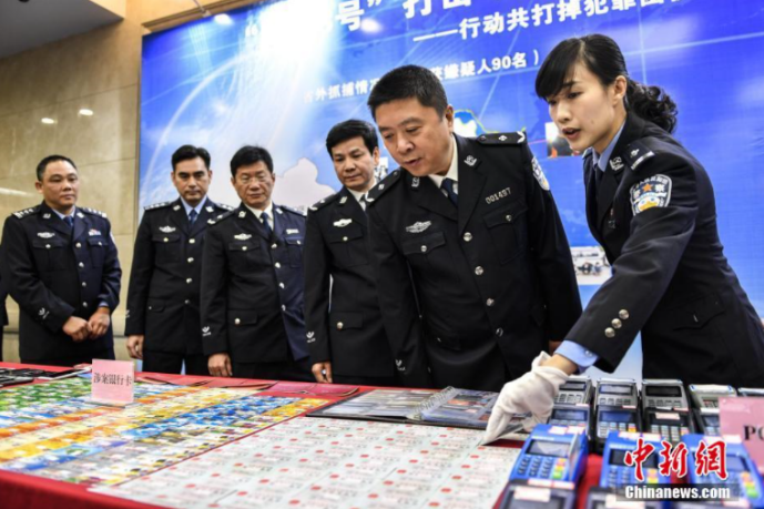 據中國新聞網報道,3月28日,廣東省公安廳內展示的涉案物品。當日,廣東省公安廳通報,廣東警方“颶風3號”專案日前在全國11個省份同步開展收網行動,成功打掉各類電信網絡詐騙團伙8個,抓獲450余名犯罪嫌疑人。初步核破全國各地案件800余宗,涉案金額達1000余萬元人民幣。 中新社記者 陳驥旻 攝