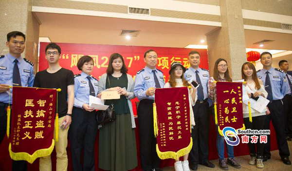 失主領(lǐng)回被盜手機(jī)并向警方贈(zèng)送錦旗。