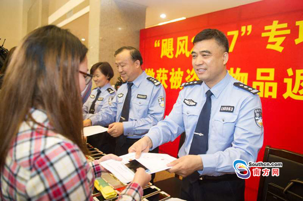 失主辦理手續(xù)領(lǐng)取被盜手機(jī)。