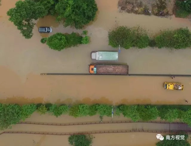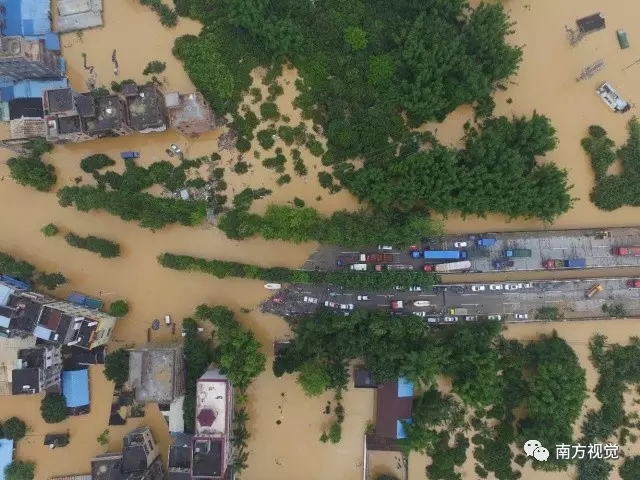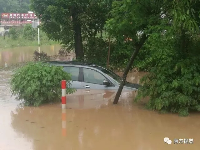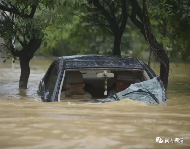 而許多沒來得及開走的汽車摩托車也被淹沒在水中。