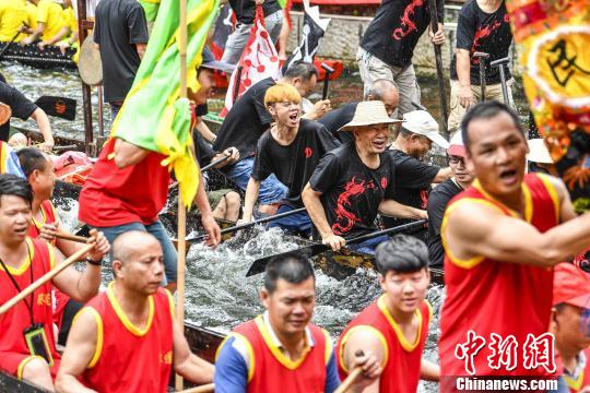 今日(五月初六),“契仔”也會扒龍船來到佛山鹽步村,回訪“契爺”參加當(dāng)?shù)佚埓啊?/p>