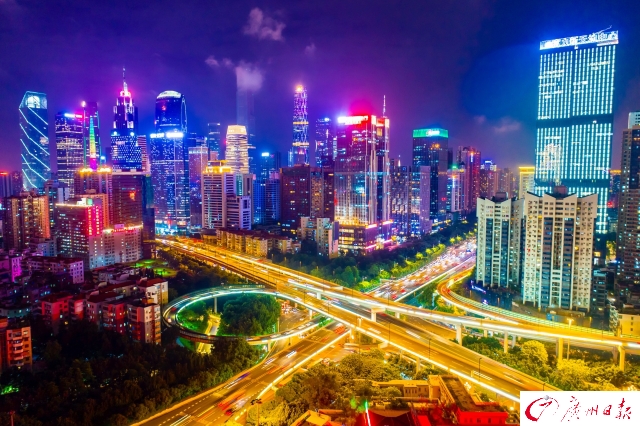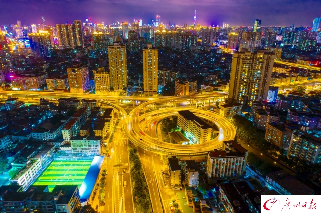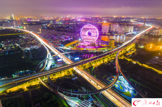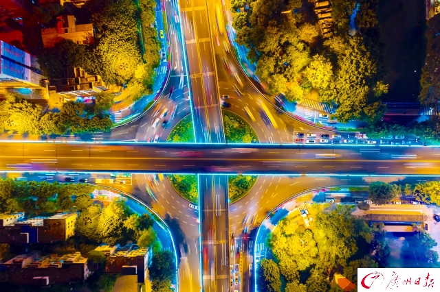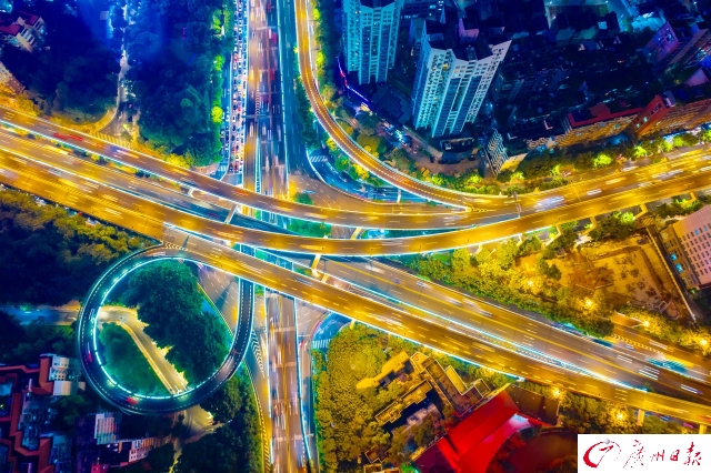 記者在傍晚時(shí)分航拍了廣州城內(nèi)川流不息的交通樞紐,用全新視角為你展現(xiàn)燈火通明、流光溢彩、氣勢磅礴的廣州之夜。夜色下的廣州立交橋車水馬龍,如同一條“黃金彩帶”;東塔、西塔和廣州塔更是交相輝映,美得讓人窒息。