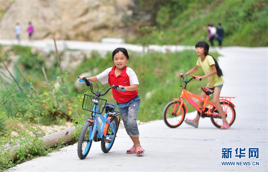 烏英苗寨的女孩在騎自行車(chē)(8月19日攝)。