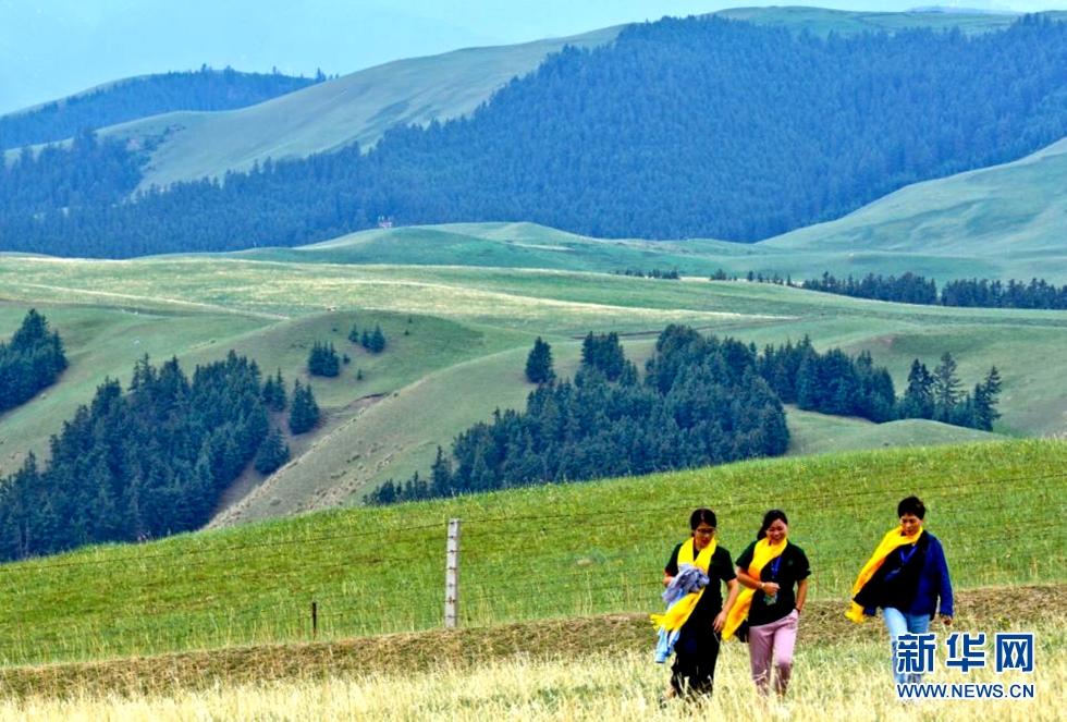 6月27日,來自上海、江蘇、福建、四川、陜西等地的游客在甘肅肅南裕固族自治縣康樂草原參觀游覽。