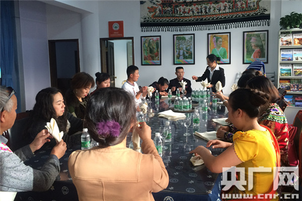 2015年11月6日,云南省昆明市盤龍區(qū)金星社區(qū)服務(wù)中心,志愿者在對社區(qū)內(nèi)的少數(shù)民族居民進(jìn)行餐廳工作上崗培訓(xùn)。