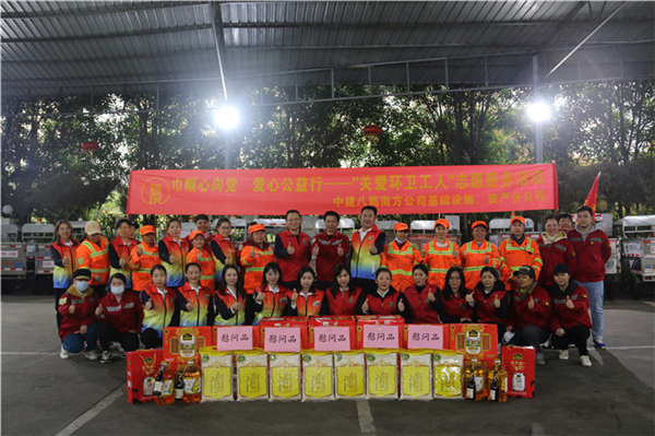 中建八局代表與環(huán)衛(wèi)工人合影留念(央廣網(wǎng)發(fā) 中建八局南方公司供圖)