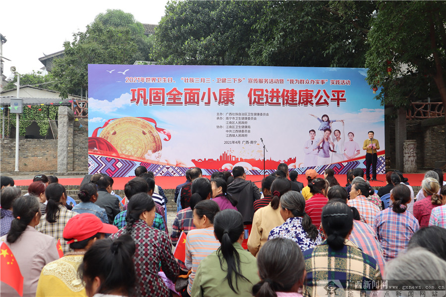廣西新聞網(wǎng)南寧4月7日訊(記者 黎伊瑋)今年4月7日是第72個世界衛(wèi)生日,我國的宣傳主題為“鞏固全面小康,促進健康公平”。為了推動全區(qū)廣大人民群眾對衛(wèi)生健康的重視,不斷提高全區(qū)各族人民的健康水平,2021年世界衛(wèi)生日、“壯族三月三·衛(wèi)健三下鄉(xiāng)”宣傳服務(wù)活動暨“我為群眾辦實事”實踐活動在南寧市江西鎮(zhèn)揚美古鎮(zhèn)金馬街廣場舉行。此次活動由自治區(qū)衛(wèi)生健康委員會主辦,南寧市衛(wèi)生健康委員會、江南區(qū)人民政府承辦,江南區(qū)衛(wèi)生健康局、中共江西鎮(zhèn)委員會、江西鎮(zhèn)人民政府協(xié)辦。