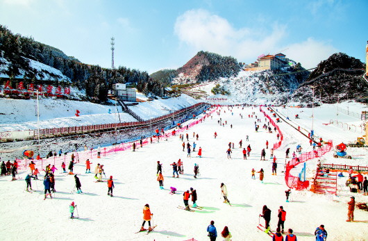 六盤水梅花山國(guó)際滑雪場(chǎng)吸引大量游客前來體驗(yàn)雪上飛舞的浪漫。郭君!z