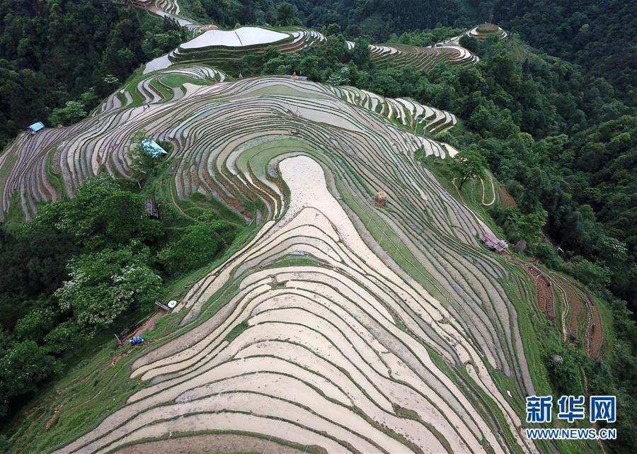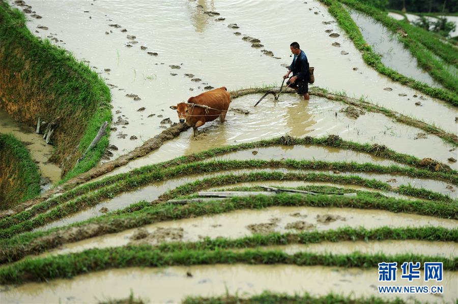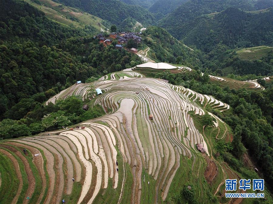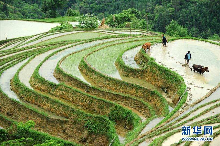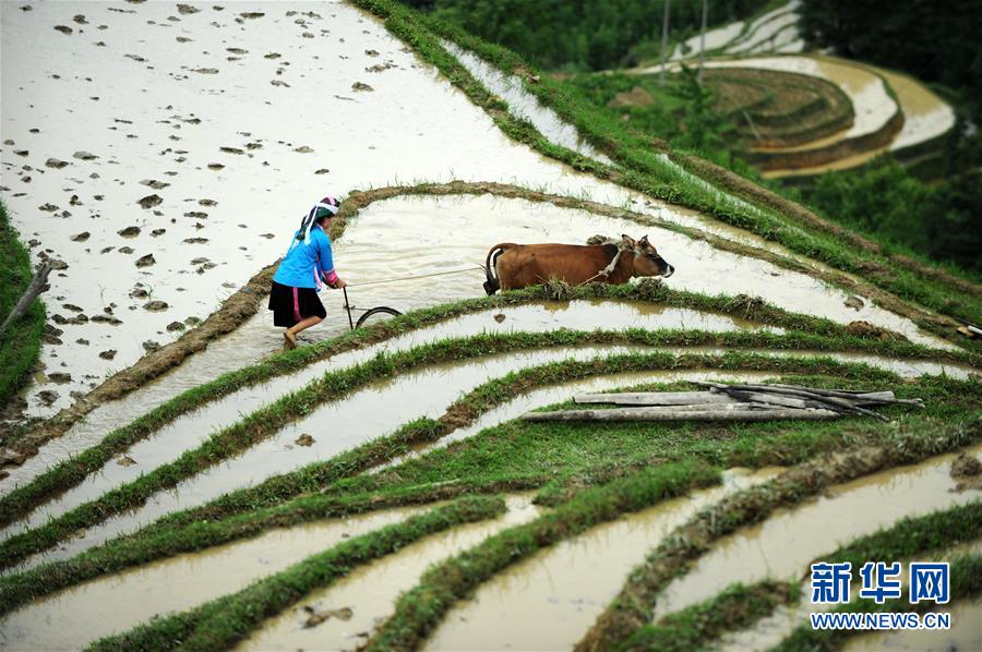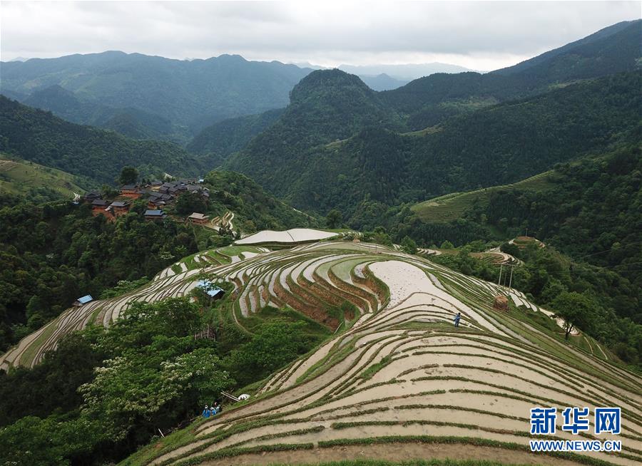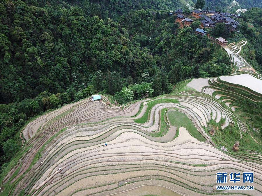 5月7日,貴州省榕江縣計劃鄉(xiāng)陽開苗寨的苗族群眾在耕田。初夏時節(jié),位于貴州省黔東南苗族侗族自治州榕江縣計劃鄉(xiāng)的陽開苗寨層層疊疊的梯田與古樸的苗寨木樓相互映襯,美如畫卷。新華社發(fā)(楊文斌攝)