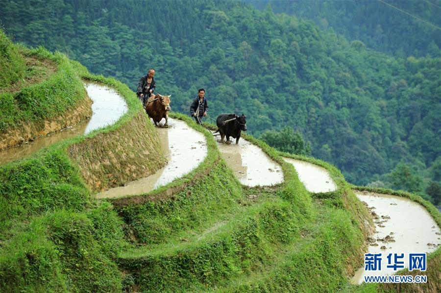 5月7日,貴州省榕江縣計劃鄉(xiāng)陽開苗寨的苗族群眾在耕田。初夏時節(jié),位于貴州省黔東南苗族侗族自治州榕江縣計劃鄉(xiāng)的陽開苗寨層層疊疊的梯田與古樸的苗寨木樓相互映襯,美如畫卷。新華社發(fā)(楊文斌攝) -