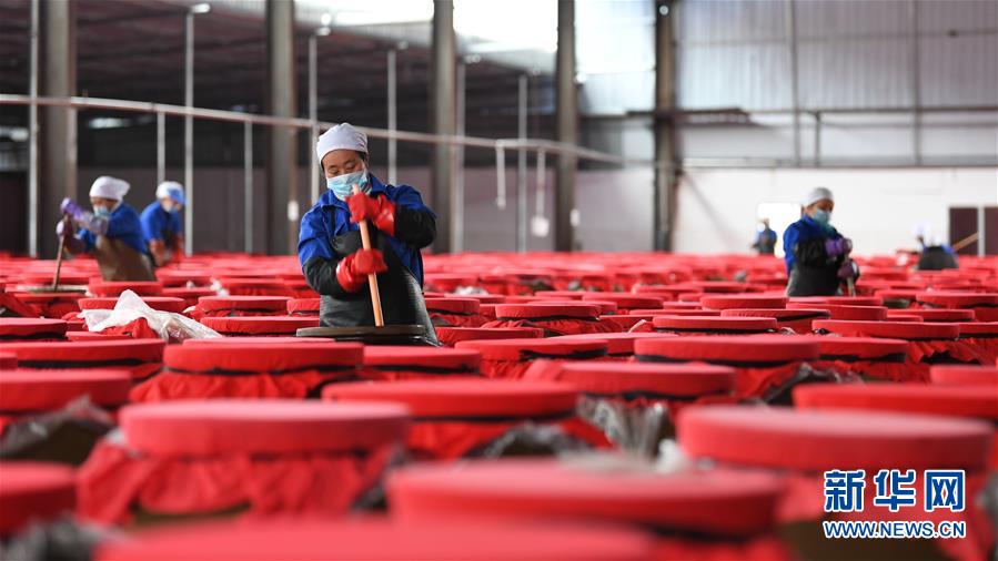 2月13日,在貴州省麻江縣一家紅酸湯生產(chǎn)企業(yè),工人在攪拌發(fā)酵中的紅酸湯。紅酸湯是貴州省黔東南苗族侗族自治州群眾喜愛的一種傳統(tǒng)食品,其制作工藝歷史悠久,以鮮辣椒、西紅柿和生姜為主原料,經(jīng)過清洗、入壇、發(fā)酵等多道工序制作而成。近年來,當?shù)卣罅ν苿蛹t酸湯傳統(tǒng)工藝保護、傳承和創(chuàng)新,紅酸湯的生產(chǎn)向規(guī);、現(xiàn)代化、標準化方向發(fā)展,并積極向外拓展市場,產(chǎn)品受到消費者青睞。新華社發(fā)(蔡興文 攝)