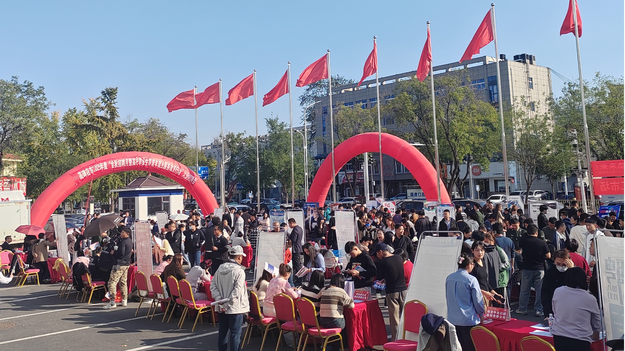 10月14日,河北省高碑店市2025年“高校畢業(yè)生等青年就業(yè)服務(wù)攻堅(jiān)行動(dòng)暨金秋招聘月”大型招聘會(huì)在該市宏吉商廈門(mén)前廣場(chǎng)舉辦。