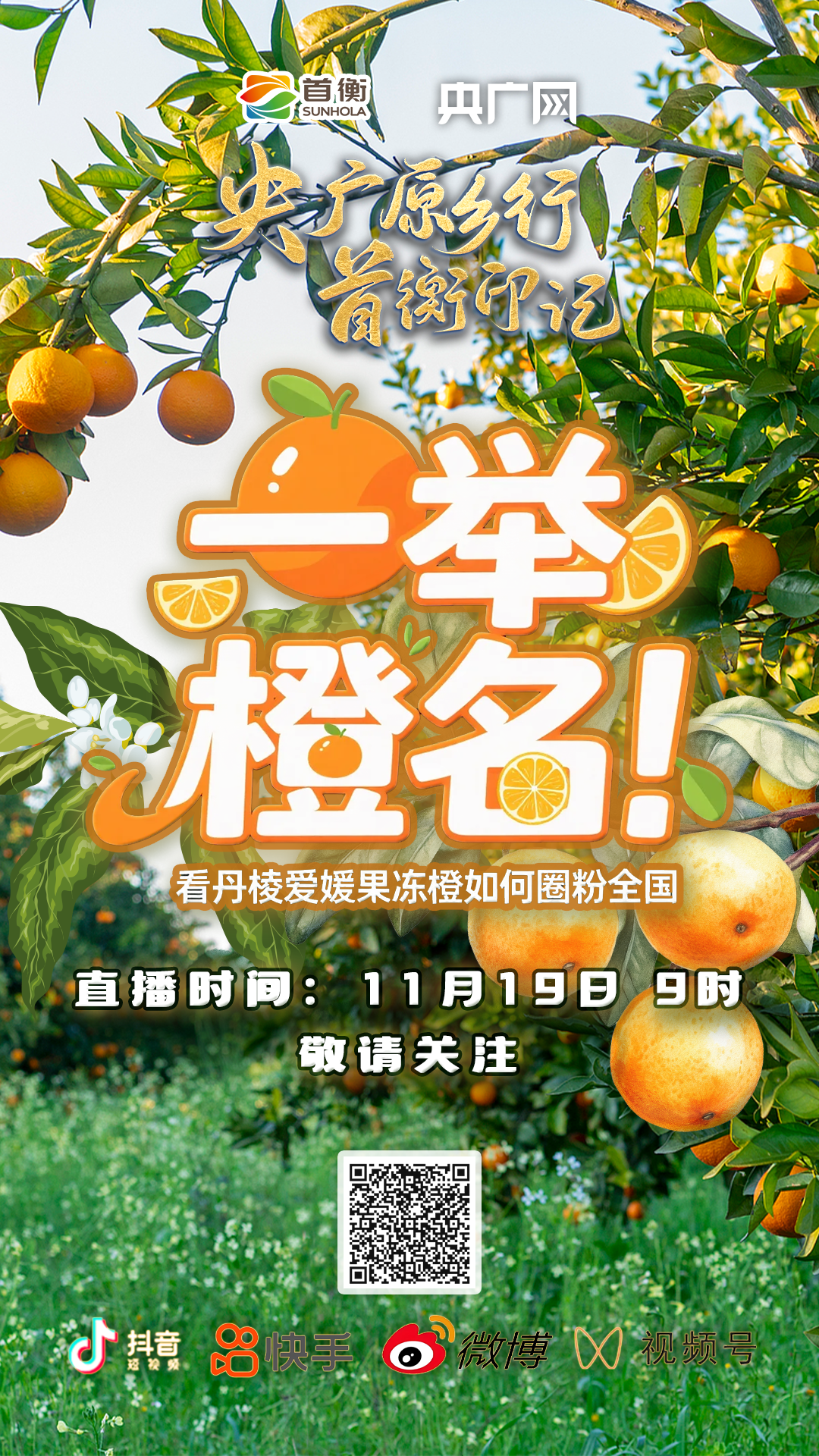 11月19日上午9時(shí),《央廣原鄉(xiāng)行·首衡印記》全國(guó)系列直播活動(dòng)第二站走進(jìn)丹棱,央廣網(wǎng)客戶端、微博、快手、抖音等多平臺(tái)全景直播。鎖定央廣網(wǎng)直播間,跟隨鏡頭走進(jìn)丹棱的金色橙海,政企農(nóng)研多方對(duì)話、田間地頭實(shí)景探訪,品味自然的甜潤(rùn)與奮斗的回甘,帶您解碼一顆橙子如何從“枝頭精靈”長(zhǎng)成“富民產(chǎn)業(yè)”,見證產(chǎn)銷融合繪就的鄉(xiāng)村振興畫卷。讓我們共同期待,丹棱愛媛果凍橙在首衡集團(tuán)的助力下,香飄全國(guó)、甜潤(rùn)全球,探尋鄉(xiāng)村振興“橙”功之路。