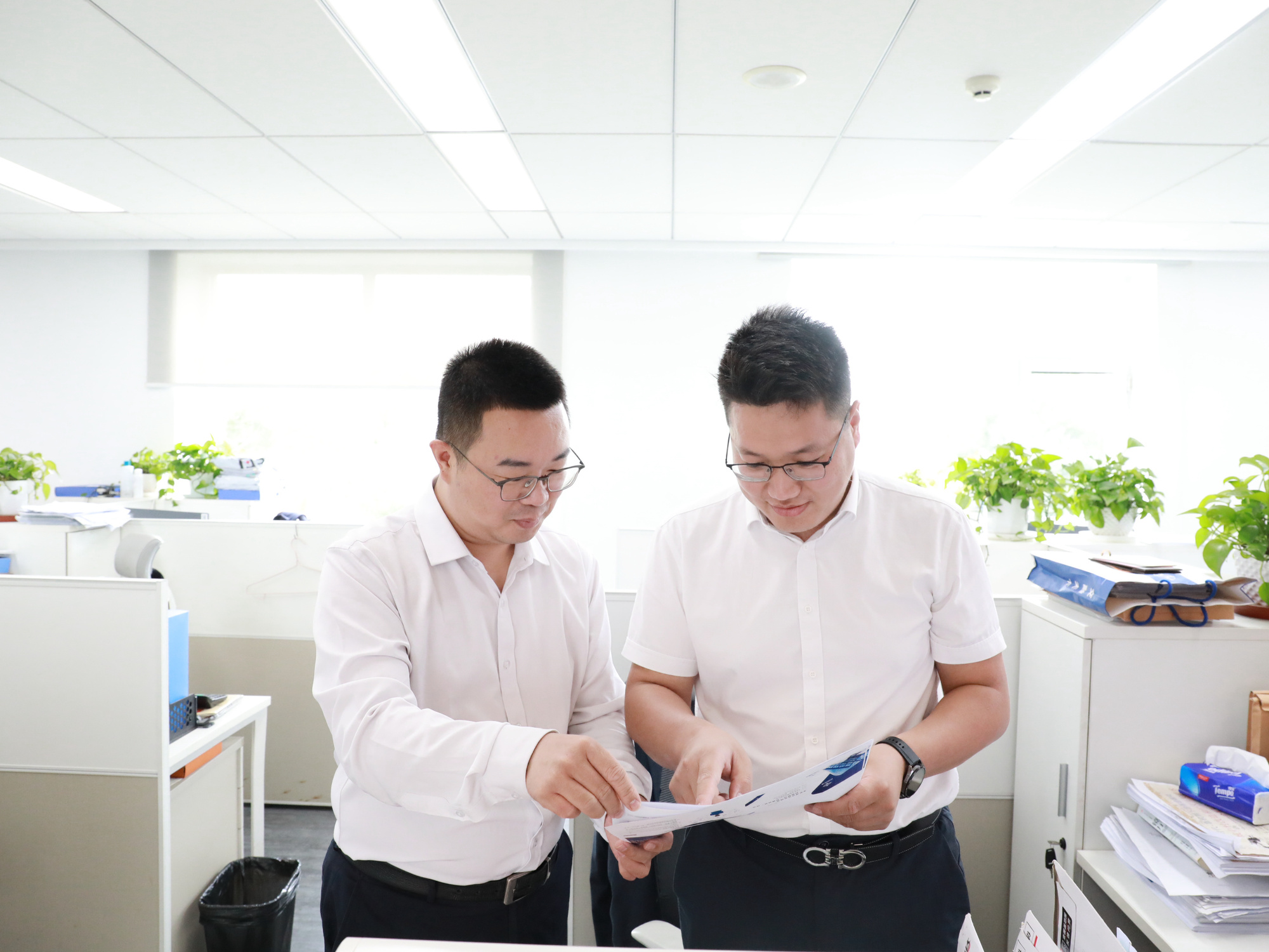 員工探討報告細節(jié)(中交雄安融資租賃有限公司供圖)