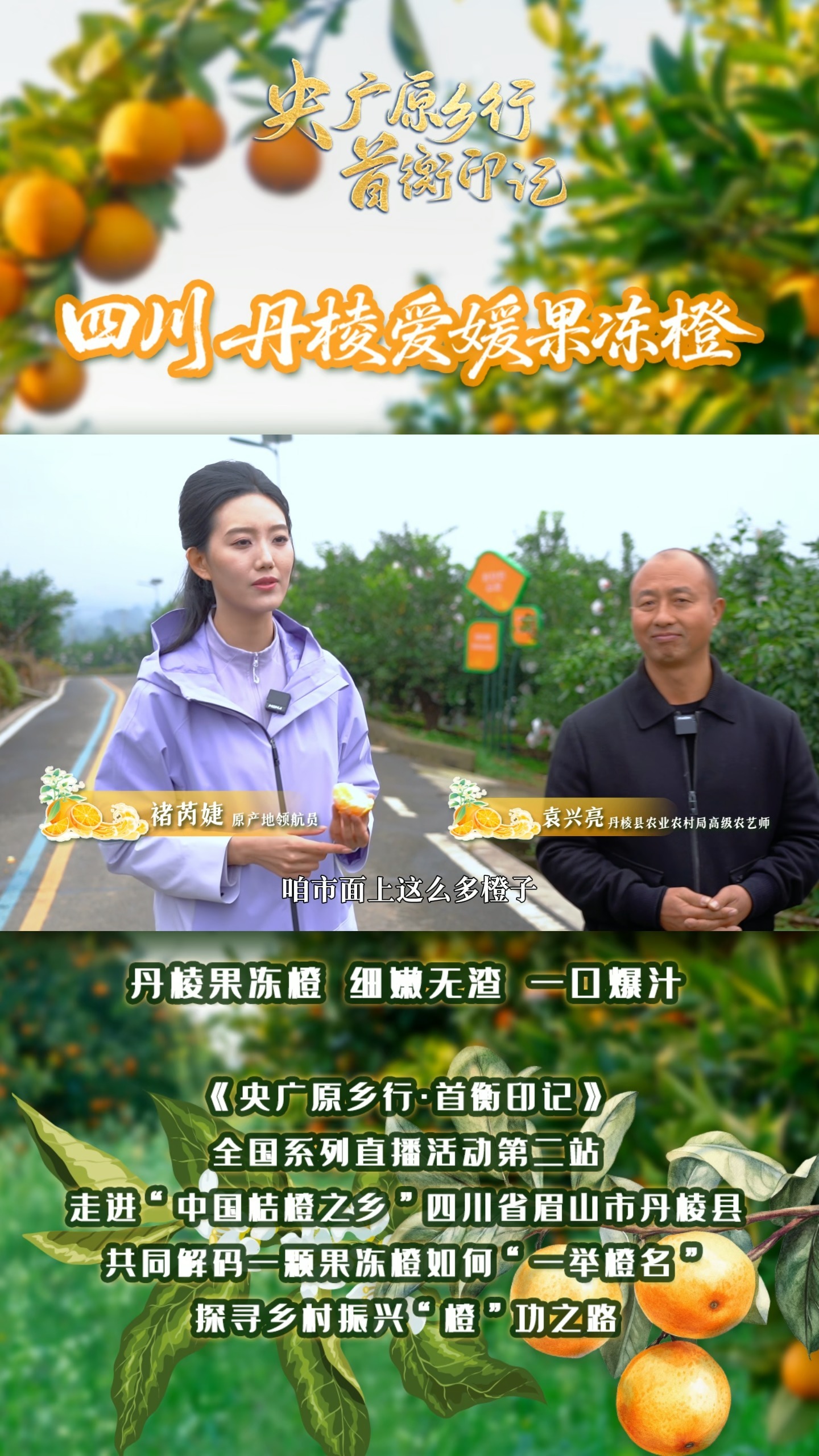 《央廣原鄉(xiāng)行·首衡印記》全國系列直播活動第二站走進(jìn)“中國桔橙之鄉(xiāng)”四川省眉山市丹棱縣,共同解碼一顆果凍橙如何“一舉橙名”,成長為富民興村的“黃金產(chǎn)業(yè)”,探尋鄉(xiāng)村振興“橙”功之路。