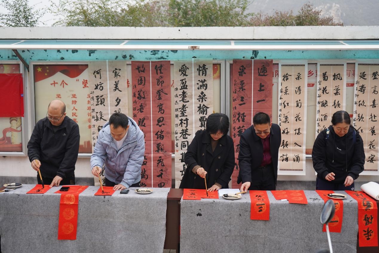志愿者們創(chuàng)作書法作品(高問 攝)