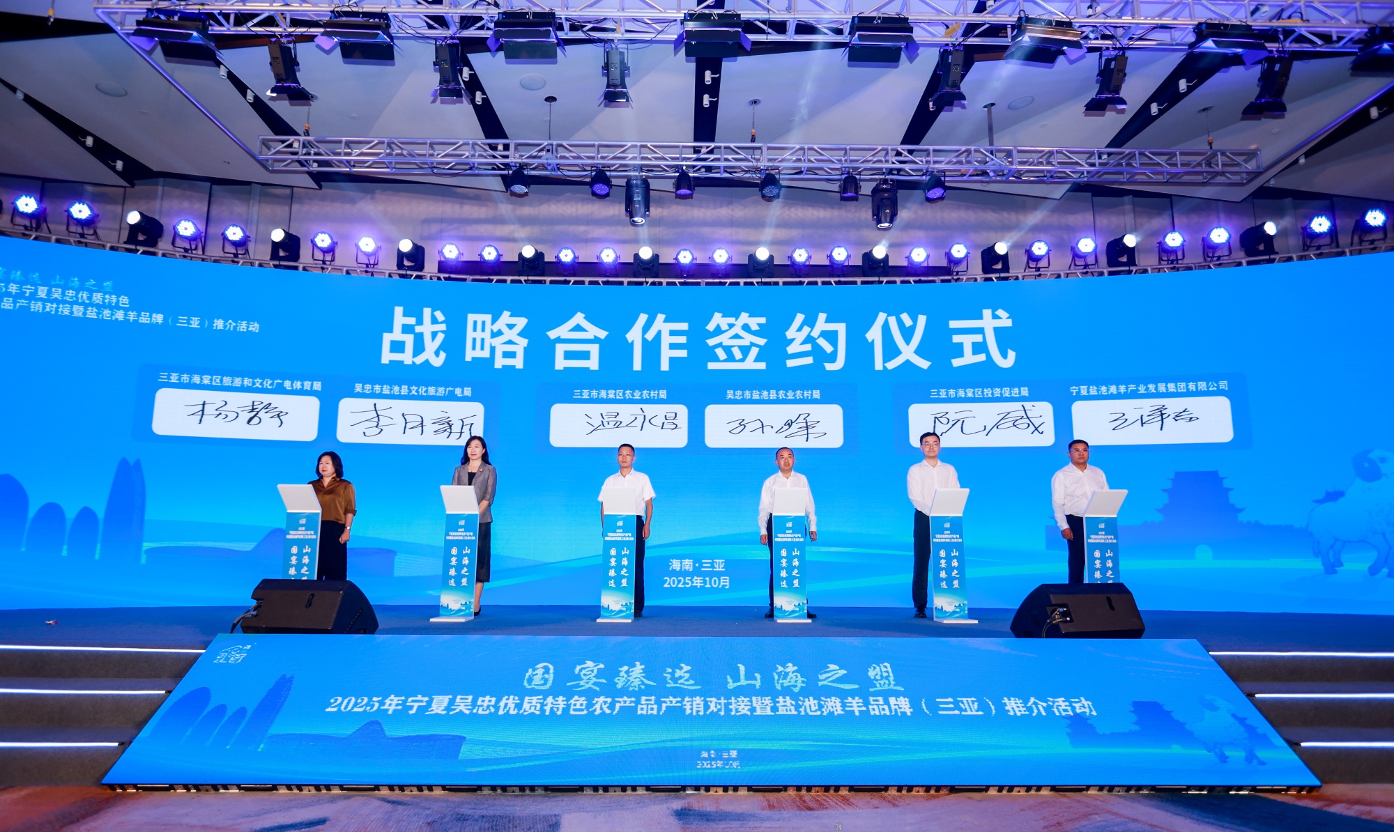 央廣網(wǎng)三亞10月27日消息(記者 蔡文娟)10月27日,2025寧夏吳忠優(yōu)質(zhì)特色農(nóng)產(chǎn)品產(chǎn)銷對(duì)接暨鹽池灘羊品牌(三亞)推介活動(dòng)順利舉辦。本次活動(dòng)以 “國(guó)宴臻選·山海之盟” 為主題,通過(guò) “政府搭臺(tái)、企業(yè)唱戲、產(chǎn)銷對(duì)接”模式,推動(dòng)鹽池灘羊等特色優(yōu)質(zhì)農(nóng)產(chǎn)品及文化旅游商品深耕華南市場(chǎng),續(xù)寫(xiě)瓊寧農(nóng)業(yè)及文旅合作新篇章。
