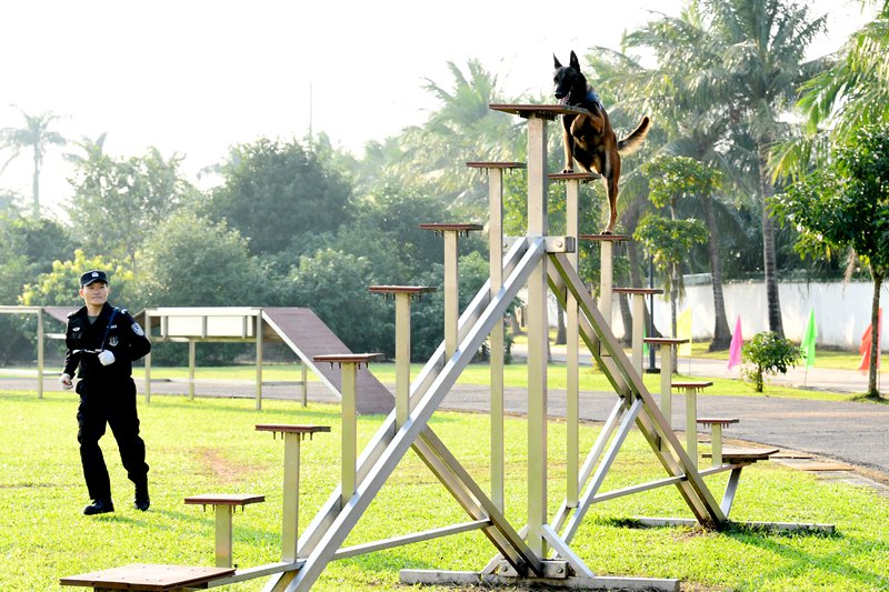 近年來,在海南省公安廳黨委的堅(jiān)強(qiáng)領(lǐng)導(dǎo)下,在公安部五局和公安部昆明警犬基地的大力支持和指導(dǎo)下,海南的警犬技術(shù)工作取得了長(zhǎng)足的進(jìn)步。目前海南警犬技術(shù)工作以省公安廳警犬基地為龍頭,共有15個(gè)市縣相繼建立了警犬技術(shù)工作機(jī)構(gòu),全省警犬技術(shù)力量不斷發(fā)展壯大,警犬?dāng)?shù)量持續(xù)增長(zhǎng),訓(xùn)練水平穩(wěn)步提升,警犬技術(shù)服務(wù)實(shí)戰(zhàn)能力不斷增強(qiáng)。 -