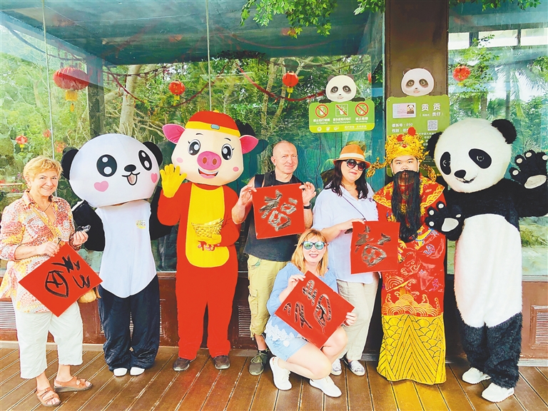 二月十日,在海南熱帶野生動(dòng)植物園,六十名烏克蘭游客參加該園策劃的中國年體驗(yàn)活動(dòng)。 海南日報(bào)記者 張茂 通訊員 劉思躍 攝