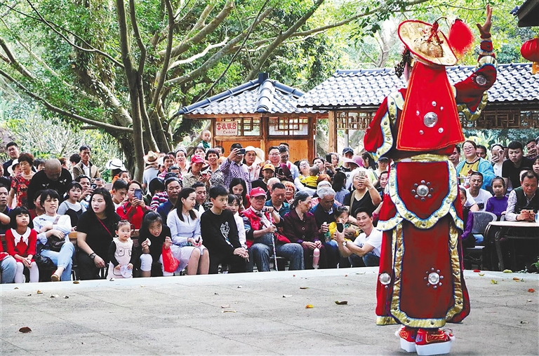 2月5日,市民游客在?诨鹕娇诘刭|(zhì)公園觀看瓊劇表演。海南日報(bào)記者 張茂 通訊員 熊麗 攝