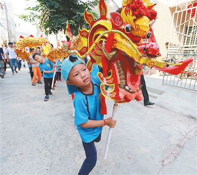 二月十九日,儋州市中和鎮(zhèn)的小朋友參與舞龍鬧元宵。 海南日?qǐng)?bào)記者 陳元才 通訊員 朱鼎甲 攝
