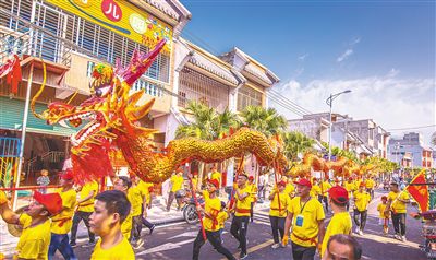 舞獅龍,賽肥雞,傳統(tǒng)民俗鬧元宵。400年歷史的臨高木偶戲里聽瓊音,歌舞一體的儋州調(diào)聲里品民歌,祭禮演變的瓊海賽肥雞里觀民俗……這一天,瓊州大地有滋有味,有聲有色。