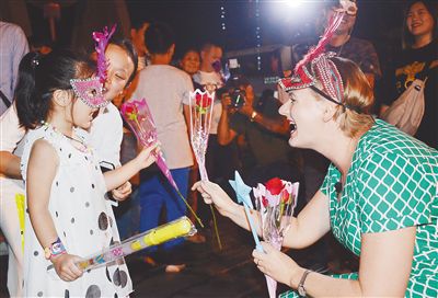 2月19日,?谑懈堑貐^(qū)舉行盛大的換花節(jié)活動(dòng),來(lái)自波蘭的寒梅跟小朋友互換鮮花,表達(dá)祝福。 海南日?qǐng)?bào)記者 張茂 攝