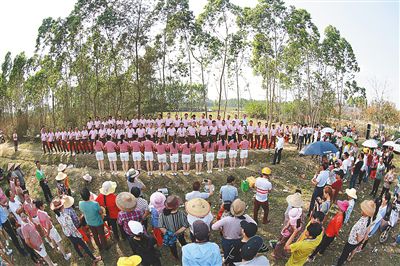 2月19日,在儋州市光村鎮(zhèn)的一處橡膠林里,當(dāng)?shù)卮迕衽牌痖L(zhǎng)隊(duì)唱起調(diào)聲,慶祝元宵佳節(jié)。 海南日?qǐng)?bào)記者 陳元才 通訊員 朱鼎甲 攝