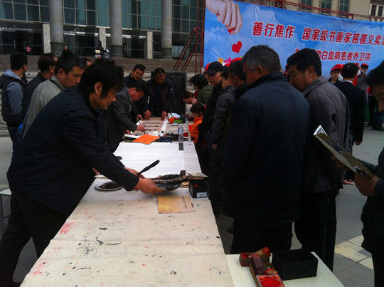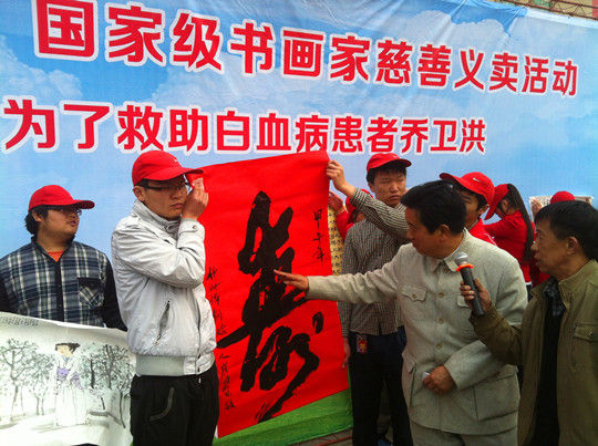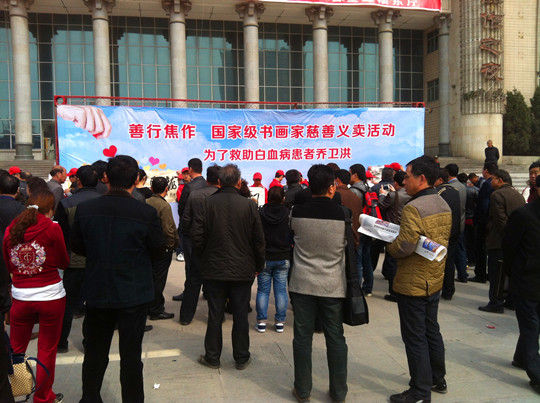 央廣網(wǎng)河南分網(wǎng)消息 據(jù)大河網(wǎng)報道:23日上午,“善行焦作—國家級書畫家慈善義賣 —為了救助白血病患者喬衛(wèi)洪”大型公益活動在焦作東方紅廣場舉行。牛芳茂、陳銀須、崔國榮、楊煥峰、劉建國、齊漢文、沈五德等七名書畫家參與此次“善行”,當(dāng)天上午共募集善款44465元。