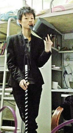 圖為:童明在寢室練習魔術(shù)