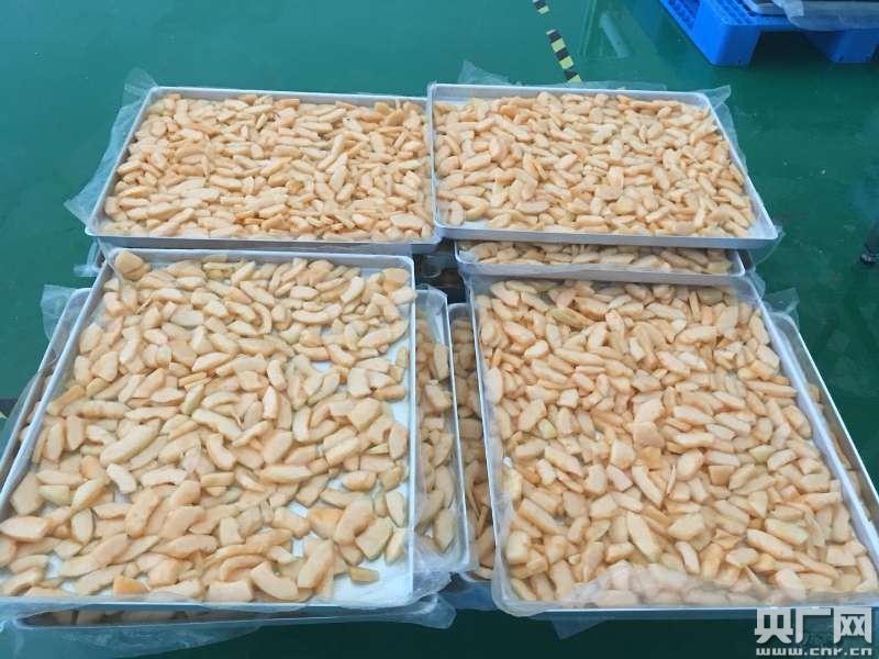 好想你新疆綜合管理中心總經(jīng)理盧國杰說,原來這里的農(nóng)民是豐產(chǎn)不豐收,瓜果在運輸?shù)倪^程中,損壞的情況比較嚴(yán)重。今年7月份,收購當(dāng)?shù)氐墓芄线_(dá)500噸,加工成這個產(chǎn)品,解決了果農(nóng)銷售難的問題,讓農(nóng)民既豐產(chǎn)又豐收。
