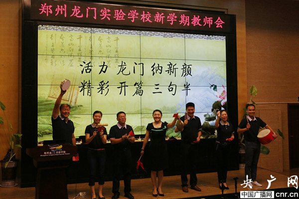 央廣網(wǎng)河南分網(wǎng)消息 2016年8月24日上午,鄭州龍門實驗學校召開了新學期全體教師會。此次會議既是新教師的歡迎會,也是全體教師的新學期動員會。