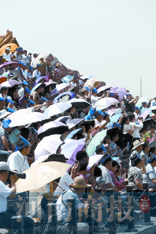 昨天開封端午詩會,游客頂著高溫?fù)蝹阌^看河南商報記者 陳亮/攝