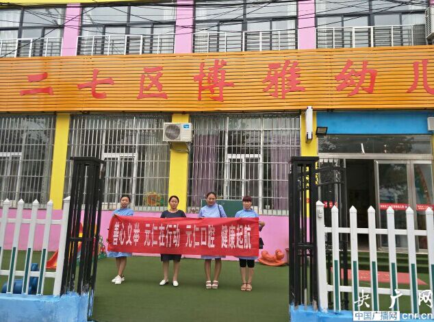 央廣網(wǎng)河南分網(wǎng)消息 2016年8月4日,鄭州元仁口腔門診部4名醫(yī)護(hù)人員,為博雅幼兒園義診,受到廣大師生的熱烈歡迎。
