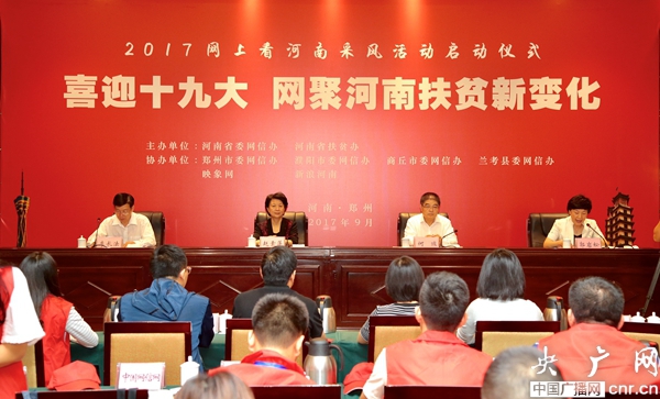 央廣網(wǎng)河南分網(wǎng)9月25日消息 (汪寧)“喜迎十九大,網(wǎng)聚河南扶貧新變化!9月25日上午,由河南省委網(wǎng)信辦和河南省扶貧辦主辦的2017“網(wǎng)上看河南”采風(fēng)活動,在河南省鄭州市啟動。