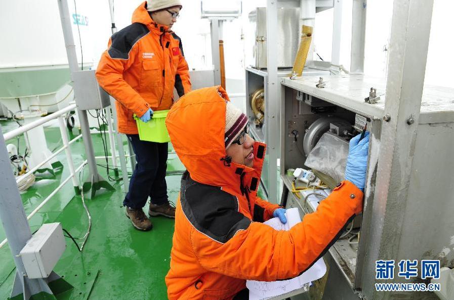 央廣網(wǎng)河南分網(wǎng)消息 據(jù)新華網(wǎng)報道:1月5日,中國第30次南極科考隊員張麋鳴(右)和肖鉦霖(左)在記錄大氣采樣資料。當(dāng)日,在積極設(shè)法擺脫困境的同時,“雪龍”號上部分科學(xué)考察項目照常進(jìn)行。中國“雪龍”號科考船1月2日完成對俄羅斯“紹卡利斯基院士”號被困52名乘客的救援工作后,在準(zhǔn)備回撤時遭遇浮冰圍困。 記者 張建松攝