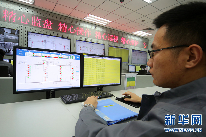 2月22日,工作人員在哈鄭特高壓工程新疆哈密南換流站主控機(jī)前監(jiān)控設(shè)備。