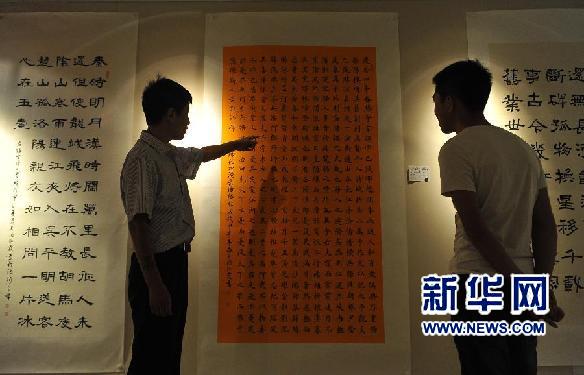 央廣網(wǎng)河南分網(wǎng)消息 據(jù)新華網(wǎng)報道:“慶祝建黨九十三周年三河、平谷、大廠書畫作品聯(lián)展”日前在河北省三河市文化館亮相,共展出來自三地的書畫愛好者創(chuàng)作的130余幅書法和繪畫作品。新華社記者魯鵬攝