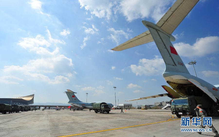 中國空軍伊爾-76運(yùn)輸機(jī)在昆明長水國際機(jī)場(chǎng)裝載救災(zāi)物資(5月3日攝)。從5月5日起,中國空軍再次派出6架伊爾-76飛機(jī),空運(yùn)中國政府向尼泊爾緊急援助的第二批人道主義救災(zāi)物資。 4月27日至5月4日,空軍派出8架伊爾-76飛機(jī)投入尼泊爾抗震救災(zāi),共計(jì)飛行20架次。 新華社發(fā)(張恒平 攝)