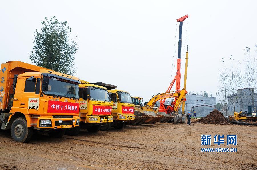 10月31日,在河南省平頂山市魯山縣辛集鄉(xiāng)柴莊村,鄭萬高鐵河南段開始施工。